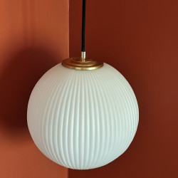 Cette suspension en opaline cannelée apportera du relief et du style à votre décoration d'intérieure