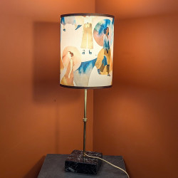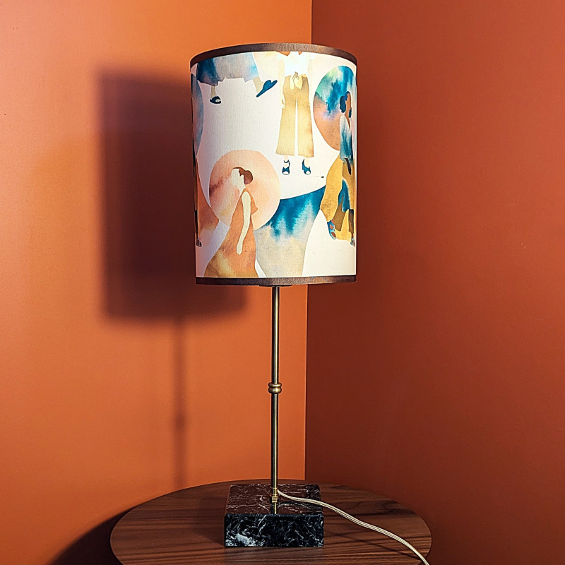 Lampe a poser abat jour tissu fait main, pied laiton et marbre noir